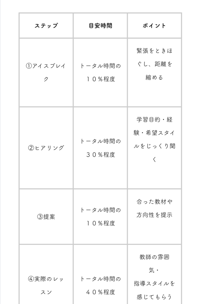 今まではトライアルレッスンがヒアリングだけで終わってしまうことが多かったです。